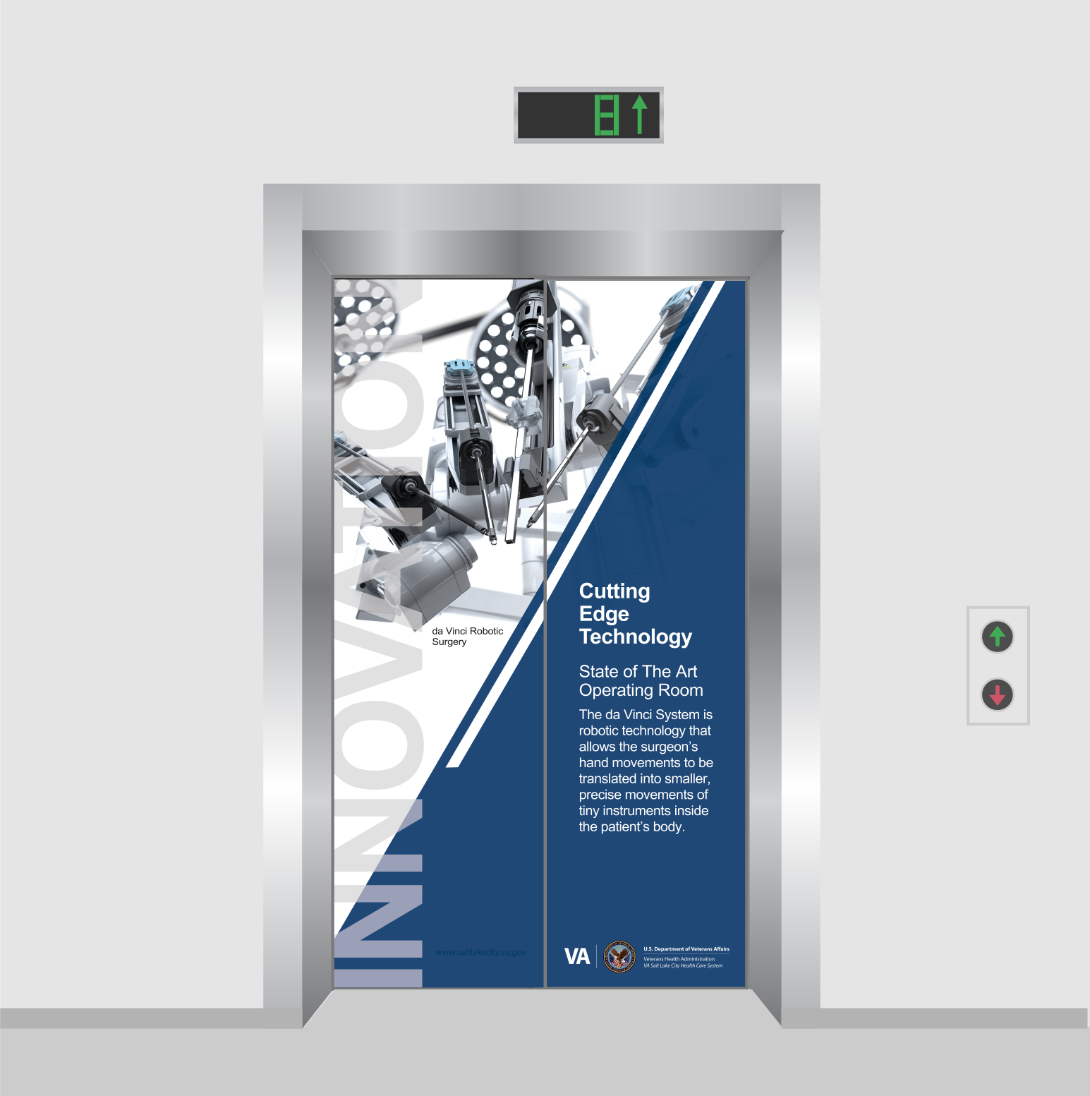 The Veterans Affairs health care system needed a way to increase visibility around key services, programs, and initiatives. High-traffic areas inside the hospital—specifically elevators—offered an opportunity to deliver clear, compelling information to patients, visitors, and staff in a confined space where attention is naturally focused.